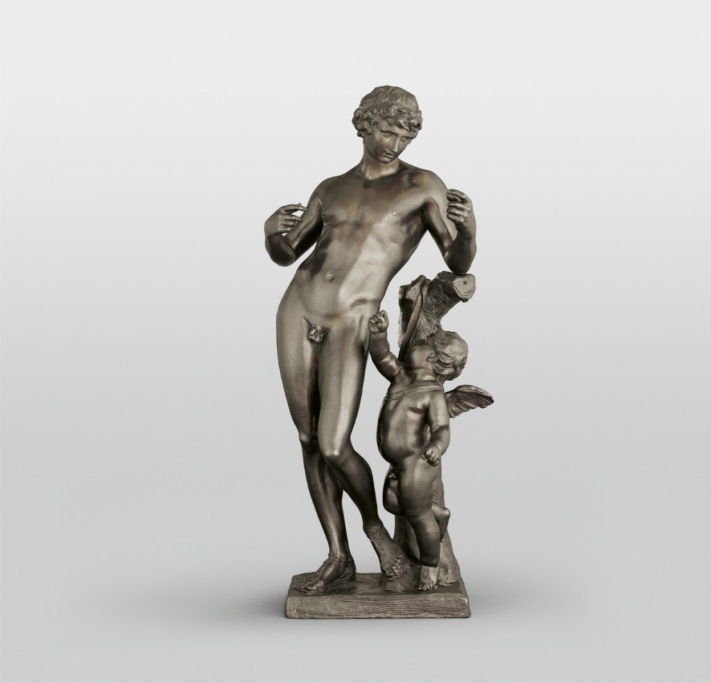 Im 18. Jahrhundert bildete die Antike den unerreichten Masßstab, an dem sich Bildhauer*innen zu orientieren hatten. Georg R. Donner versuchte, diesem Anspruch gerecht zu werden, führte dabei aber einen Wettstreit unter falschen Vorzeichen: Dem berühmten Barockbildhauer und erfolgreichen Antikenrestaurator Francois Duquesnoy war es um 160 gelungen, bronzene Statueeten anzufertigen, die ihren antiken Vorlagen zum Verwechseln ähnlich sahen. Eine davon, Apollo und Cupido, konnte Donner in der Sammlung Liechtenstein studieren. Dort galten die Werke von Duquesnoy zwischenzeitlich als Antiken – und auch Donner wurde getäuscht: Er versuchte, das “antike” Original durch originelle Paraphrasen zu überbieten.